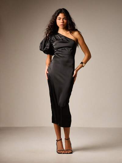 AiiRZ One Shoulder Puff Sleeve Midi Dress