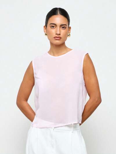 Elegant Modern Sheer Mesh Panel Layered Design Tank Top