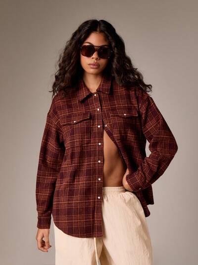 Plaid Flannel Button Down Shirt With Pearl Snaps