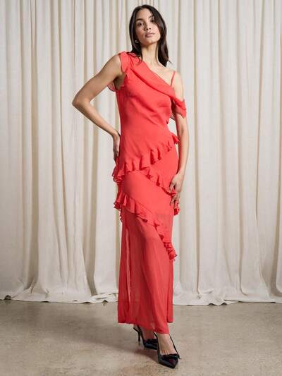 Sheer Sequin Side Ruched Slit Detail Bandeau Midaxi Dress