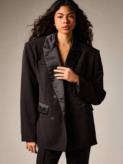 Oversized Double Breasted Blazer With Satin Lapels