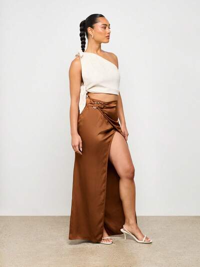 High-Waisted Satin Maxi Skirt With Side Split Detail-45%