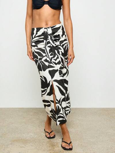트로피컬 프린트 사롱 파레오 랩 맥시 스커트새로움