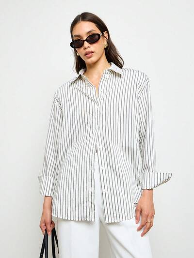 버튼 다운 긴팔 스플릿 백 타이 블라우스새로움