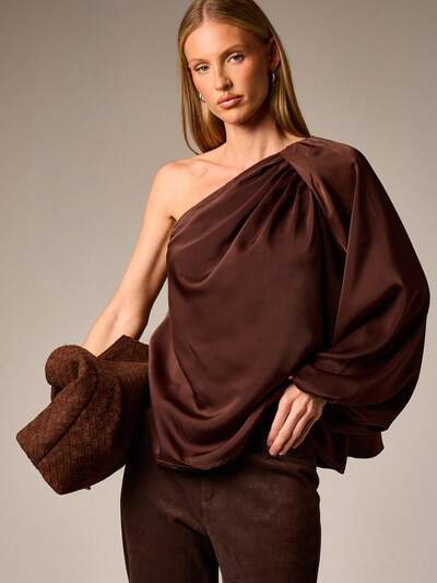 드레이프 디테일이 있는 원숄더 블라우스-20%