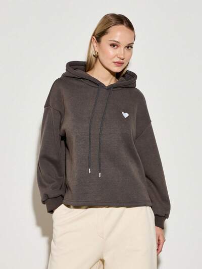 Cozy Oversized Drawstring Heart Embroidery Sweatshirt Hoodie