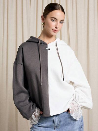 Oversized Colorblock Lace Cuff Hoodie-50%