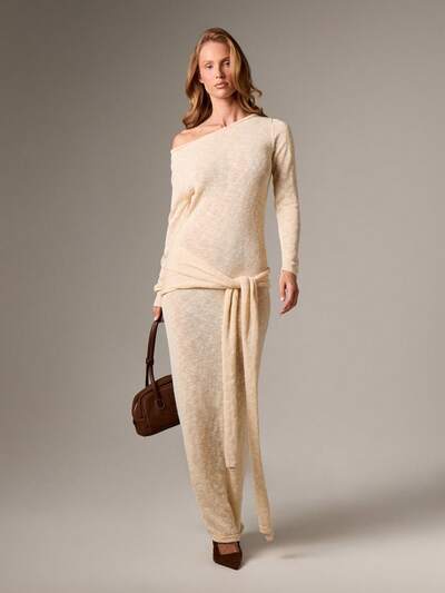 Sukienka sweterkowa maxi z odkrytymi ramionami i wiązaniem w talii-50%